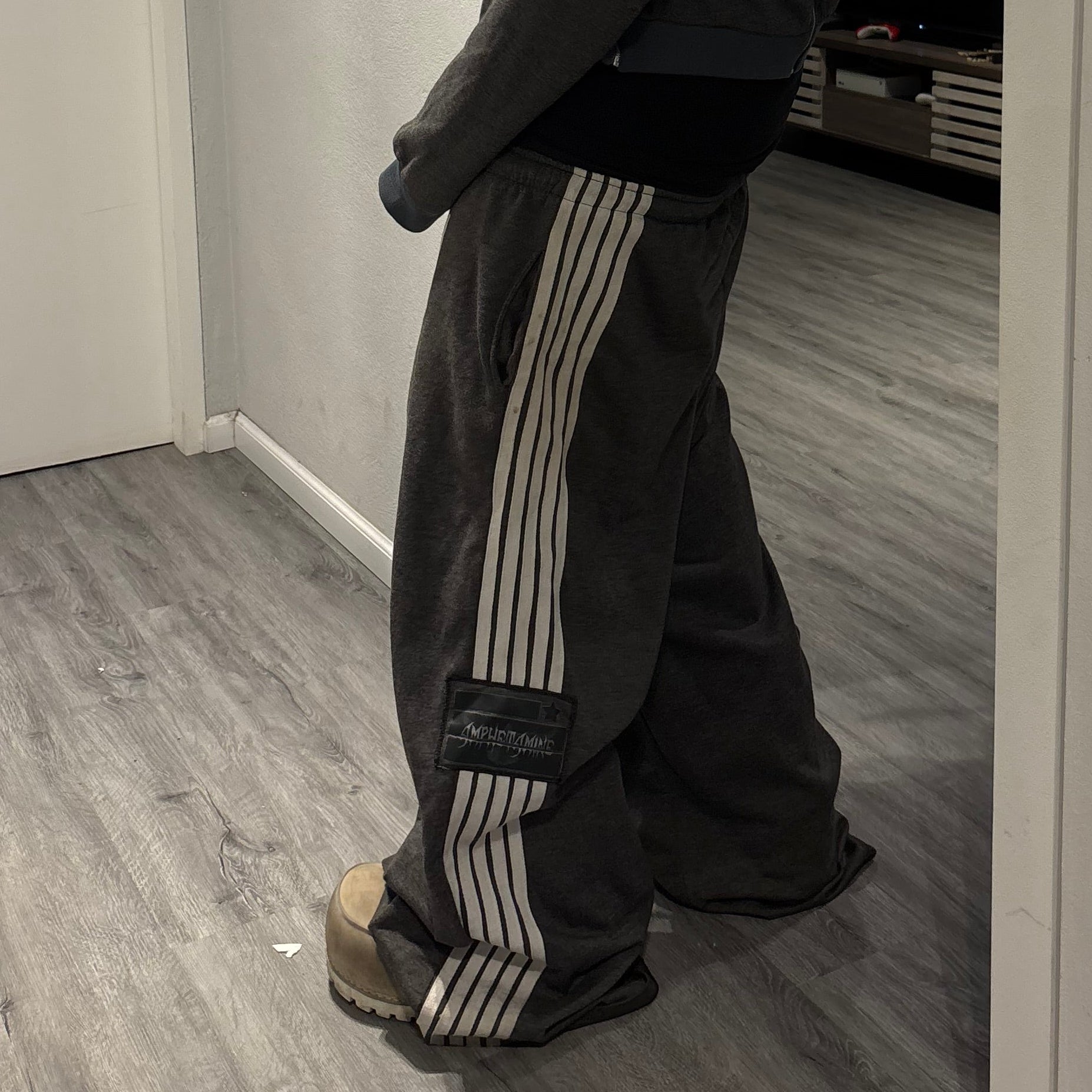 Bold and oversized, these black Amphetamine sweatpants Featuring extra-long drawstrings, side stripe detailing, and standout branding across the legs and waistband, they’re designed for a statement fit with all day comfort.