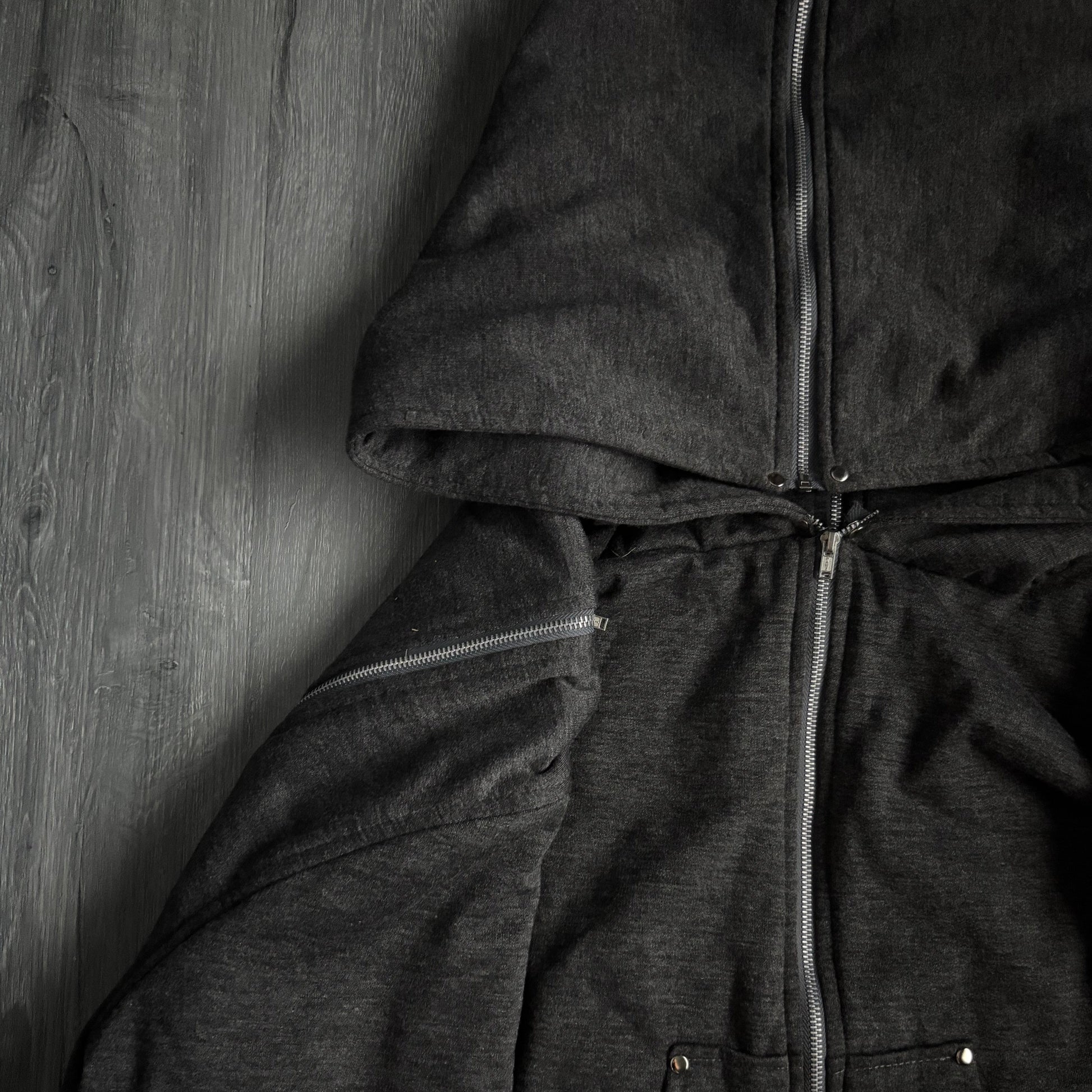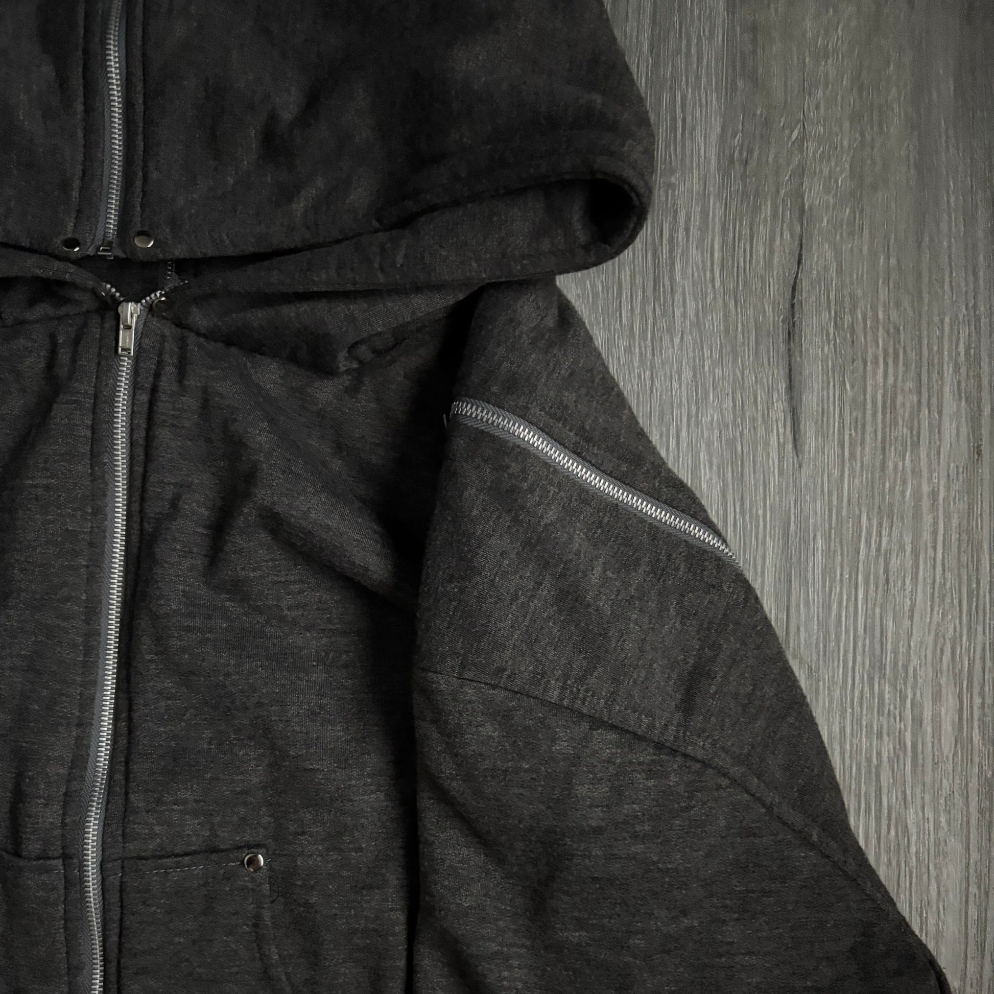 Full front zipper with exposed seam detailing for an industrial aesthetic