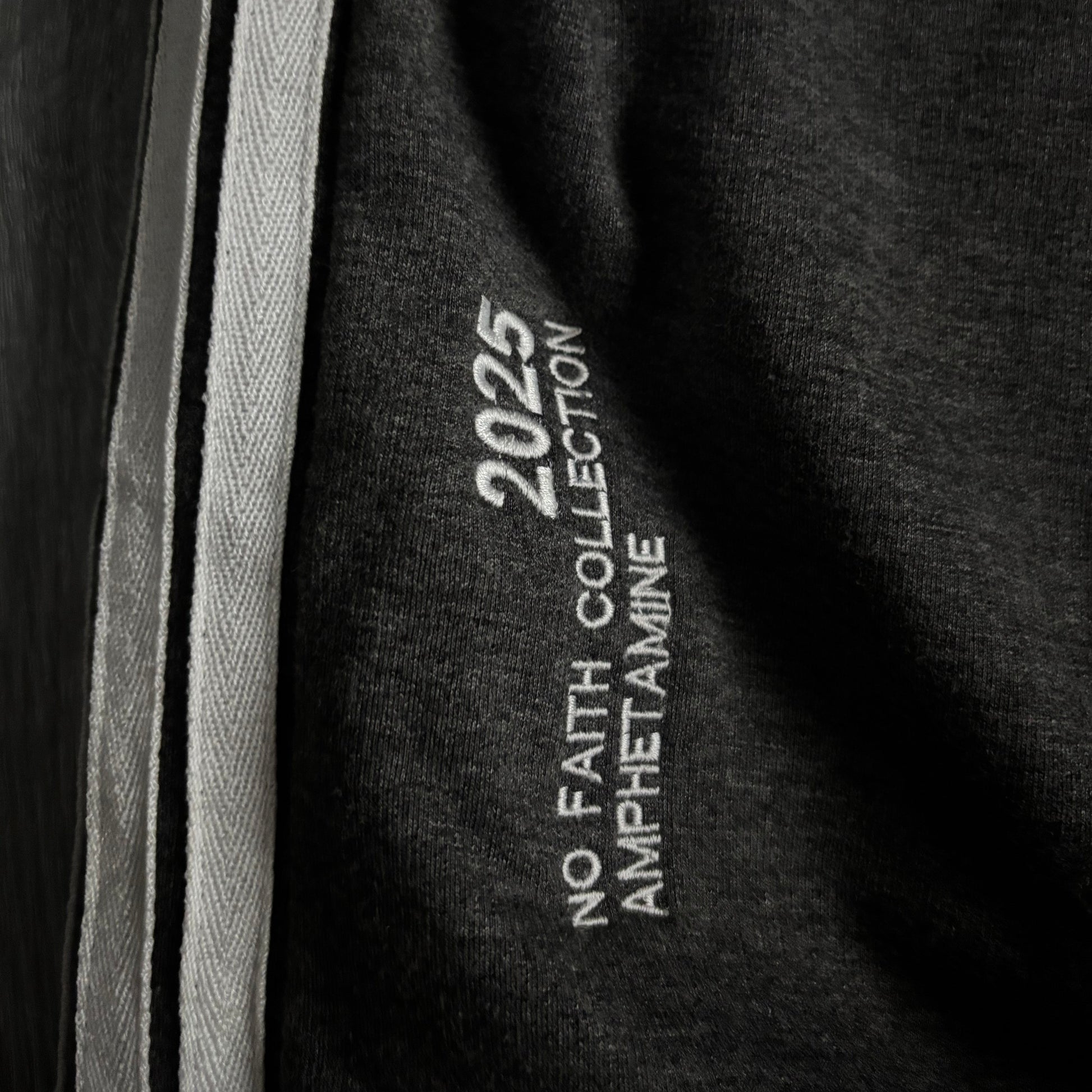 Bold “NO FAITH COLLECTION” graphic across the front with “AMPHETAMINE” branding at the waist